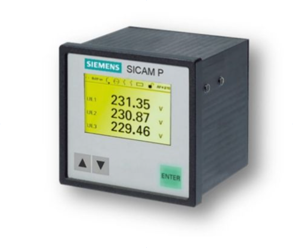 SICAM P55 Power Meter Device is a power meter for panel mounting with graphic display and background illumination, or for standard rail mounting, used for acquiring and/or displaying measured values in electrical power supply systems. More than 100 values can be measured, including r.m.s. values of voltages (phase-to-phase and/or phase-to ground), currents, active, reactive and apparent power and energy, power factor, phase angle, harmonics of currents and voltages, total harmonic distortion per phase plus frequency and symmetry factor, energy output, as well as external signals and states.